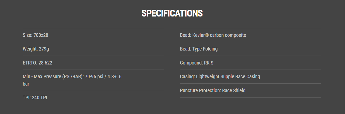 케이덱스 레이스 GC는 스피드, 코너링 접지력, 내구성이 균형을 이룬 경량의 고성능 튜브리스 타이어 입니다. 새로운 240TPI의 유연한 레이스 케이승은 구름성 효율을 향상시키며, 검증된 CADEX RR-S 컴파운드와 마이크로 프로파일 숄더는 다양한 도로 컨디션에서 안정적인 접지력을 제공합니다.