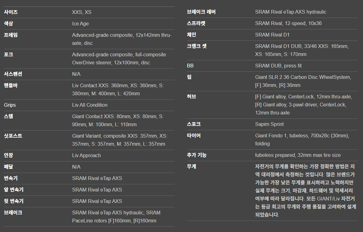 튜브리스 GIANT SLR 36 Disc 휠시스템(일부 모델)은 공기 저항을 줄이며, Variant 카본 복합소재 싯포스트는 최상의 컴플라이언스를 제공하여 거친 도로 위도 부드럽게 주행하는 반응성이 뛰어난 라이딩 퀄리티를 선보입니다