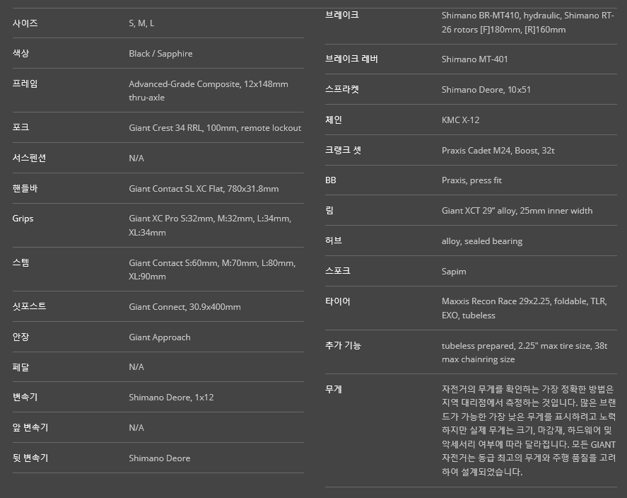 레이스 시리즈, 오프로드 마라톤, 그리고 XC 트레일에서 질주하기 위한 카본 복합소재 하드테일 29인치 바이크. XTC Advanced 29는 빠르게 흘러가는 싱글트랙 위에서 반응성이 뛰어난 라이딩 퀄리티, 최고의 효율성을 선보입니다.지름이 큰 29인치 휠과 가벼운 Advanced 등급 카본 복합소재 프레임, 부드럽지만 날렵한 XTC Advanced 29는 XC 지형 위를 여유롭게 질주합니다. 프레임에는 100mm 포크를 장착했고, 수공으로 제작된 카본 복합소재 레이업은 프레임 사이즈에 맞춰 커스텀되어 최적의 무게 대비 강성 비율과 수직 컴플라이언스를 제공합니다. 그 결과, 빠른 속도로 자신있게 싱글 트랙을 질주하고 가파른 언덕을 오르는 자전거가 탄생했습니다. 또한 넓은 Boost 허브 스페이싱은 휠의 강성을 높이고, 큰 사이즈의 휠을 사용할 수 있도록 충분한 클리어런스를 추가했습니다.가벼운 무게와 민첩성 가벼운 Advanced 등급 카본 복합소재 프레임은 클라이밍, 가속, 그리고 스프린트 경쟁에서 필요한 어드밴티지를 제공합니다. 뛰어난 효율성 프레임은 뛰어난 무게 대비 가성 비율을 지니도록 설계되었으며, 이는 트레일 위에서 효율적인 페달링 파워와 정밀한 핸들링을 제공합니다. 커스텀 컴플라이언스 프레임은 각 사이즈에 따라 조정되었습니다. 각각의 카본 레이업 스케줄은 수직 컴플라이언스를 최적화하여 XC 지형 위에서 부드러운 라이딩 퀄리티를 제공합니다. |