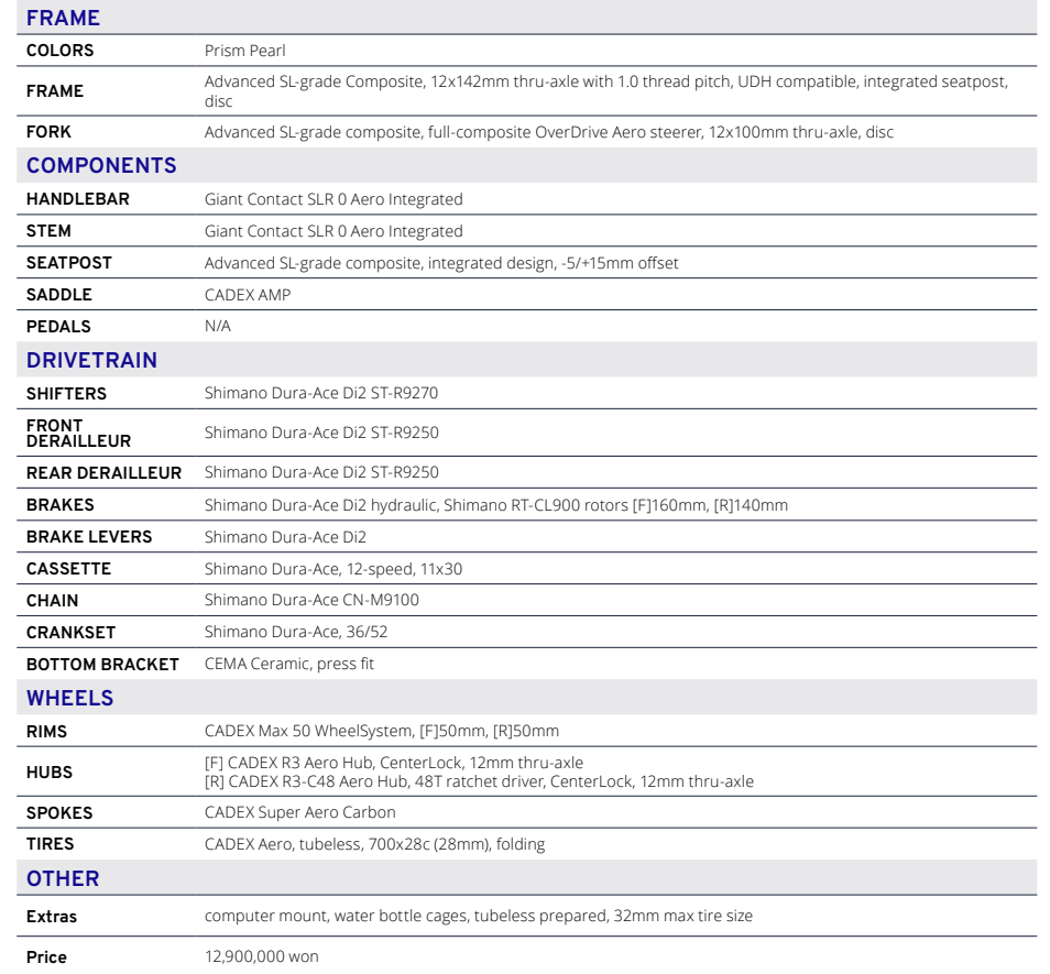 프레임셋, 조종석, 바퀴 및 타이어는 고속 주행 시 총 저항을 낮추는 통합 시스템을 형성합니다. 에어로시스템 프레임과 통합 조종석은 항력을 최소화하는 반면, 에어로휠시스템과 타이어는 롤링 저항을 줄입니다. 즉, 앞에서 당김을 당기거나 굴리거나 평지를 가로질러 기어오를 때 속도를 높이는 데 더 많은 속도가 필요합니다.