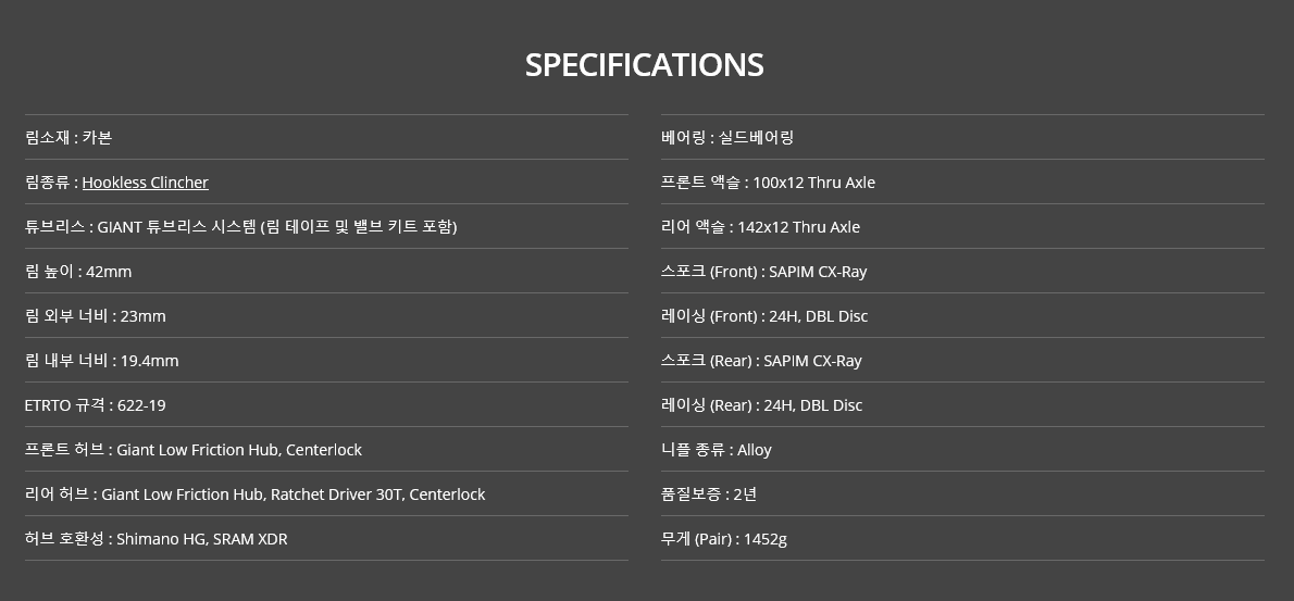 훅-타입 림과 비교했을 때 GIANT의 최신 훅-리스 디자인은 림 너비가 더 넓으며, 작고 가벼운 타이어도 크고 무거운 타이어와 동일한 용량으로 사용할 수 있어 결과적으로 전반적인 무게를 줄였습니다.