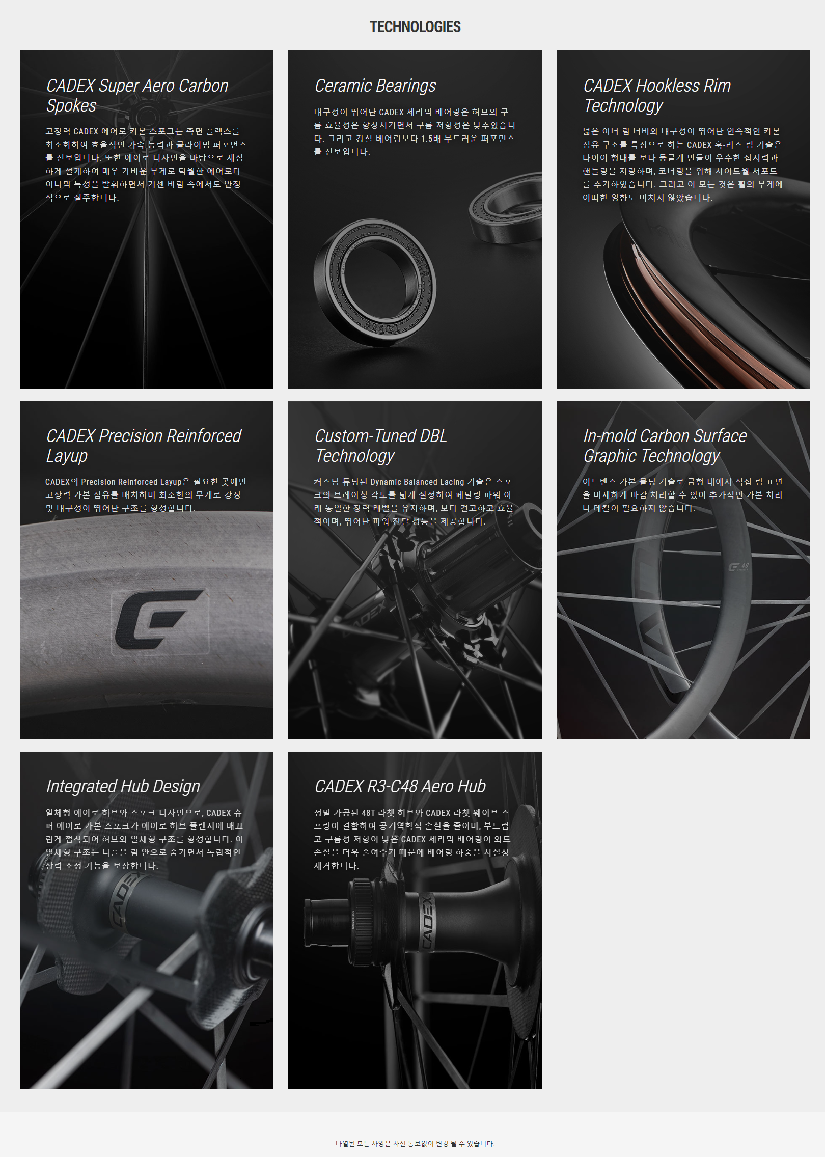 | 리어 허브 : CADEX R3-C48, Ratchet Driver, Centerlock One-piece integrated hub and spokes | 보증 기간 : Lifetime (for registered original owners) | |