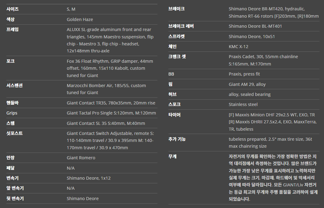 촉촉한 흙에서 질퍽거리는 진흙, 고산 지대에서 사막의 바위에 이르기까지. 트랜스 X SX는 29인치 프론트 휠과 27.5인치 리어 휠 조합으로 뛰어난 컨트롤과 민첩한 라이딩 퀄리티를 선보입니다. 145mm 리어 서스펜션, 160mm 포크, 조정 가능한 지오메트리를 갖춘 트랜스 X SX는 트레일을 따라 질주할 준비가 되었습니다. 핵심 성능 요소 업데이트된 서스펜션 “SX” 시리즈는 기술적인 싱글트랙과 험한 내리막길을 질주하기 위해 최신 마에스트로 리어 서스펜션과 145mm 트래블을 갖추었습니다. 트러니언 마운트 샥, Advanced Forged 카본 상단 링크는 긴 스트로크를 제공합니다. 이로 인해 부드럽고 액티브한 느낌이 들 뿐만 아니라 섀시의 강성이 향상되어 정밀한 컨트롤이 가능합니다. 리어 서스펜션과 긴 트래블의 160mm 포크는 내리막길에서도 탁월한 컨트롤과 높은 자신감을 제공합니다. 조정 가능한 지오메트리 3-포지션 마에스트로 플립 칩을 활용하여 라이딩 스타일과 지형에 맞춰 프레임 지오메트리를 조정할 수 있습니다. 하이 세팅은 그라운드 클리어런스를 더하기 때문에 좁고 기술적인 지형에 적합합니다. 로우 세팅은 헤드 튜브 각도가 완만해지고 B.B. 드랍이 추가되어 빠른 속도에서 자신감있게 핸들링 할 때 이상적입니다. 미들 포지션은 중립 위치에 있습니다. 그리고 새로운 헤드셋 플립 칩으로 리치를 조정할 수 있어 간편하게 원하는 포지션으로 세팅할 수 있습니다. 믹스 휠 세팅 29인치 프론트 휠은 험하고 기술적인 트레일에서 빠른 속도와 안정성, 그리고 뛰어난 프론트-엔드 컨트롤을 제공합니다. 그리고 27.5인치 리어 휠은 민첩성과 기동성을 더해 라이더가 빠르게 코너링하고 장애물을 뛰어넘으며 자신만의 스타일을 선보일 수 있도록 도와줍니다. 하이라이트 ALUXX SL 알루미늄 섀시는 145mm 리어 트래블의 새로운 마에스트로 리어 서스펜션 셋업이 특징입니다. 160mm 포크와 결합된 이 긴 트래블 트레일 자전거는 바위, 나무뿌리, 울퉁불퉁한 길을 완벽하게 제어합니다. 뒤 27.5인치와 앞 29인치의 혼합 휠 “뮬렛” 셋업은 롤오버 기능과 빠르고 민첩한 기동성을 결합한 재미있는 조합입니다. 프레임에는 2개의 플립 칩이 장착되어 있습니다. 로커 암에 위치한 리어 플립 칩을 통해 라이더는 지오메트리를 조정하고 핸들링을 미세 조정할 수 있습니다. 또한 새로운 헤드셋 플립 칩은 10mm의 리치 조절을 통해 포지션과 핏을 조절할 수 있습니다. 다운 튜브 내부의 새로운 통합 프레임 스토리지로 공구, 간식 및 기타 필수품을 쉽게 휴대할 수 있습니다. 탑 튜브 아래 마운트는 추가적인 수납 옵션을 제공하며, 다운 튜브의 보호대는 트레일 이물질과 운송으로 인한 손상을 방지합니다. |