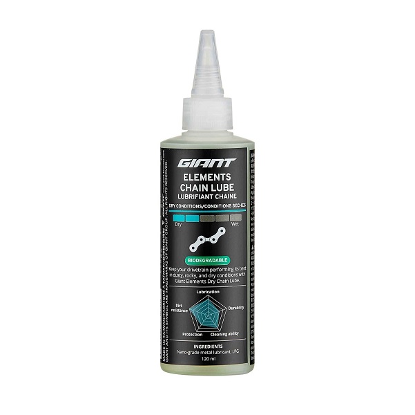 Giant Elements Dry Chain Lube를 사용하여 먼지가 많고 바위가 많고 건조한 조건에서 구동계가 최상의 성능을 발휘하도록 하십시오. 링크당 한 방울씩 체인에 직접 2-3cm 거리에서 바르십시오. 부드러운 극세사 천으로 여분의 부분을 닦아냅니다.