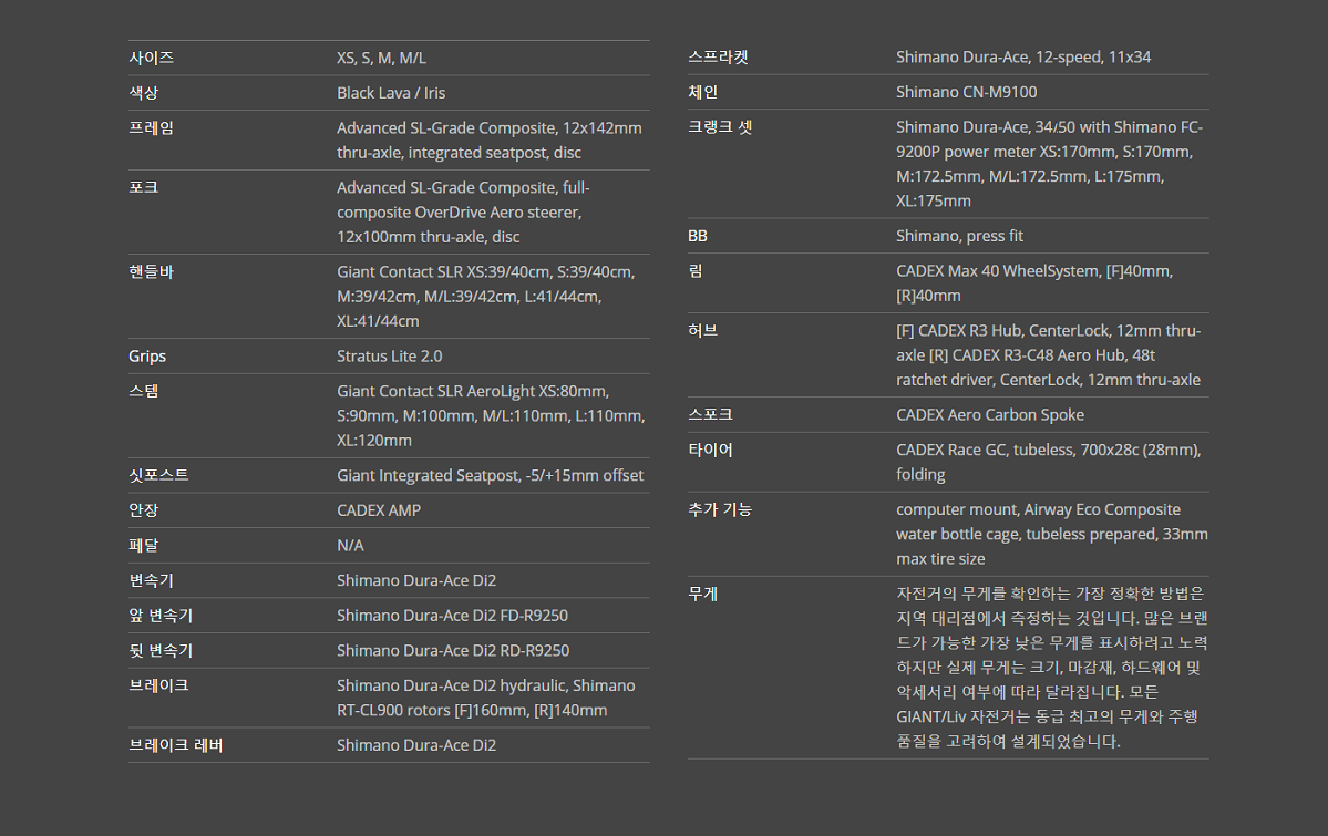 프레임셋, 휠, 콕핏 및 기타 부품은 하나의 시스템처럼 성능을 발휘하도록 설계, 개발 및 테스트했습니다. 새로운 오버드라이브 에어로 스티어러 튜브 기술은 컨택트 SLR 에어로 라이트 스템 및 컨택트 SLR핸들바와 결합되어 탑 캡, 케이블 및 스페이서를 통합하는 내부 케이블 라우팅으로 더 공기역학적이면서 사용 친화적인 셋업으로 완성되었습니다.